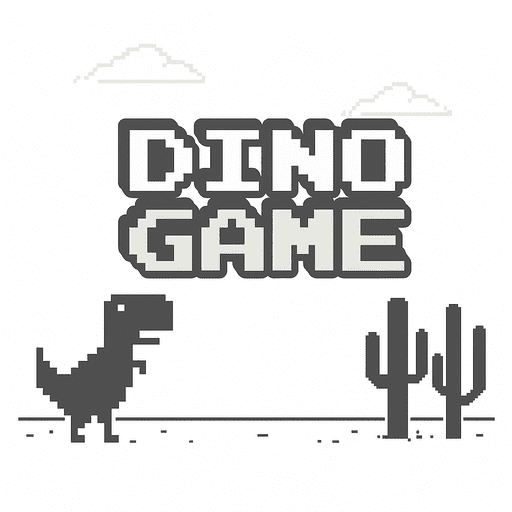Dino Game is a 2D arcade game where you control a T-Rex running through the desert, avoiding cacti and flying pterodactyls. The simple white-gray design keeps the focus on timing and reflexes. The game starts easy but gets harder as speed increases, and hitting any obstacle makes you start over.